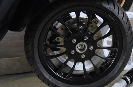 Das sind die Quellagio 13 Zoll Felgen QSprint 13 für die Vespa GTS. Diese sind die einzigen Felgen die in Österreich bei der Vespa GTS 300 Euro5 (MC3D) eintragungsfrei sind!