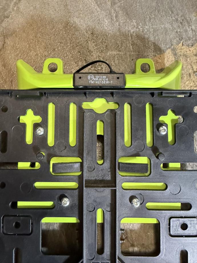 Am besten man nimmt selbstschneider Schrauben zur Montage des Kennzeichenhalters am Heck.